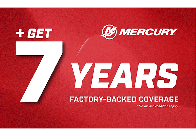 Plus when you purchase a new Mercury 2.5-425hp outboard as part of a new boat package, you’ll get the standard 3-year limited warranty, plus an additional 4 years of factory-backed Mercury Product Protection Gold coverage (a value of up to $8,330 per engine), for a total of 7 years of coverage.**